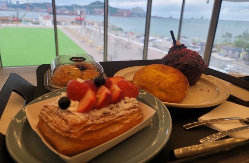 실내 면적 550평 규모로 넓으며, 탁 트인 개방감의 초대형 공간을 자랑하며 브루잉 바가 있는 정면과 이어지는 측면까지 유리창 너머 영도의 바다를 배경으로 하고 있으며 오륙도와 부산항 그리고 부산항대교 등 가장 부산다운 조망을 보유하고 있습니다. 중앙 중정과 3층 층고까지 내려간 계단형 좌석도 수직의 개방감을 주며, 계단형 좌석에서 보이는 아래쪽 창으로는 잔디가 깔린 2층의 야외 가든을 한 눈에 볼 수 있습니다. 각 분야별 전문가 들이 만들어 내는 100여 가지 종류의 베이커리와 디저트, 30종이 넘는 커피와 음료를 오션뷰를 바라보며 편안히 즐길 수 있습니다.