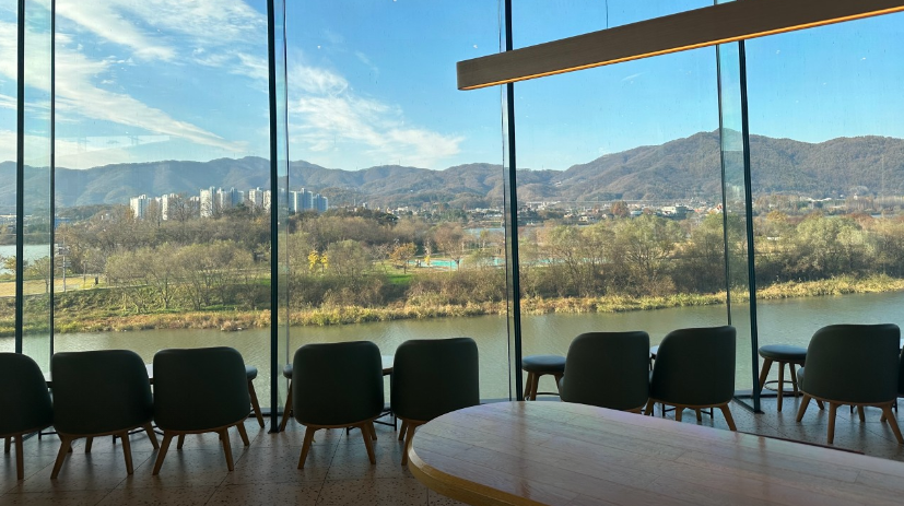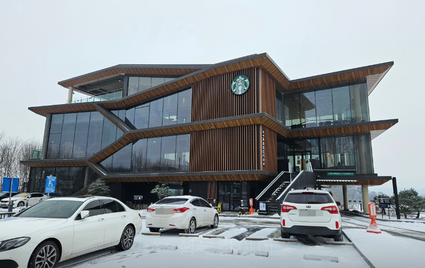 양평 양강섬이 한눈에 바라다보이는 동네카페 스타벅스 더양평 DTR점 주말이 아닌 평일에 언제든 따뜻한 라테 한잔 생각날때 들리는 동네카페입니다. 쌀쌀한 날씨에 오늘은 따뜻한 라떼 생각에 바식하고 고소한데 꿀까지 뿌려서 더 맛있는 허니치즈크루아상 6900 원하고 카페라테 그란데 5500원 샷추가 6100원으로 카페인 충전하고 왔습니다. 캠핑용 품하고 크리스마스 분위기의 굿즈와 머그컵 티팟도 판매 중입니다 커피 한잔 마시고 바로 앞 양평군립미술관에서 전시회도 구경하거나 창밖으로 보이는 양강섬 산책하며 데이트하기에도 좋은 양평카페입니다 겨울엔 양평 양평겨울여행 놀러 올 때 들리시기에 좋은 양평역 인근에 위치한 카페입니다. 강과 산을 볼 수 있는 한국 스타벅스 10대 매장 중 한 곳. 남한강변 물멍~ 하기 좋은 곳이랍니다.^^ 넓고 쾌적하고 인테리어가 층별로 다양합니다. 마침 한 달에 한번 하는 '별빛라이브' 공연 들을 수 있어서도 좋았는데 퀴즈 맞춰서 스벅 롤케이크까지 얻은 행운.