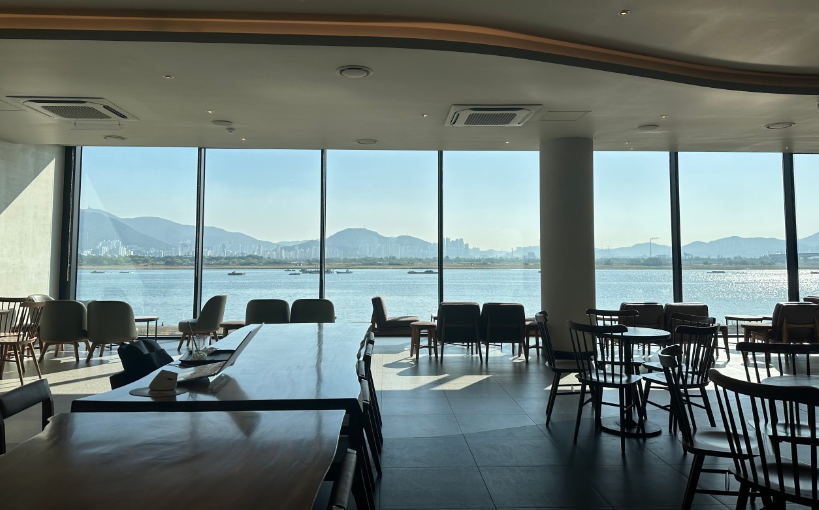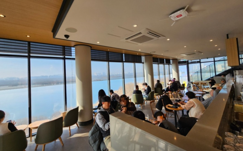 리버사이드 매장 답게 뷰가 너무 멋져요. 2층 매장규모는 협소한 편인데 날씨 좋은날에는 3층 루프탑에서 강보면서 힐링하기 좋은곳이에요! 오랜만에 들려봤는데 여전하네요, 대화하는 소리에 집중하기는 힘든 실내공간은 2층이에요, 올 때마다 많은 좌석이 항상 차 있어요, 하지만 뷰가 다하는 곳이니까~ 3층은 루프탑으로 좀 더 상쾌하고 여유 있게 커피와 뷰를 즐길 수 있어요. 바람이 세지 않은 날씨라면 3층자리를 추천합니다~ 한강뷰가 멋져요, 금요일인데도 열두 시 넘으니까 사람 많아져요. 신메뉴 눈사람 바움쿠헨, 크리스마스 루비뱅쇼, 자바칩 프라푸치노로 주문했고요. 통창밖 리버뷰 바라보며 비멍 물멍하기엔 나이스한 곳!
